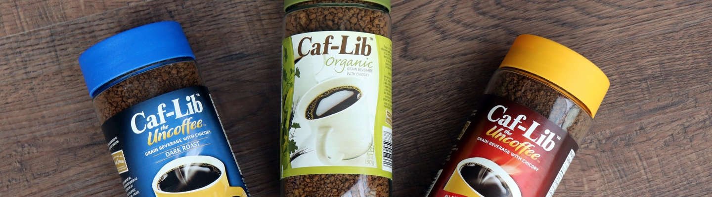 Caffeine has always been present in coffee, tea, cola, and chocolate. Today it is added in the preparation of several foods, beverages, medicines and even some cosmetics. Anyone who wishes to reduce their caffeine intake, can use Caf-Lib as a coffee substitute. Caf-Lib is composed of purely plant-based ingredients, including chicory. There are absolutely no chemicals or preservatives used in the production process. Caf-Lib is not decaffeinated: it is made from ingredients that never had caffeine to begin with and contains a small amount (about 1.6%) of organic acids coming from the grain used in the ingredients.